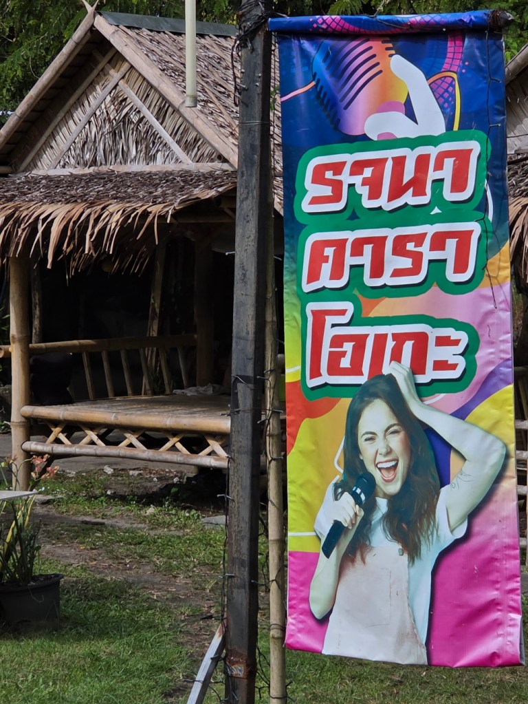 Rode back to the beach house, started a load of laundry, and went down to visit with Steve Rosse. I had brought Northern Thai coffee beans for both Tim and Steve, so I gave Steve the coffee, and he invited me to sit and talk as he continued work on another turtle statue. Another friend of Steve’s, Patrick from Massachusetts, stopped by, and we spent a couple of hours talking, laughing, and sharing stories. The topic of entertainment in Thai Mueang came up. There are no real entertainment venues in Thai Mueang. However, there are a couple of small karoke places down the road a little ways where you could sit and listen to generally poor karaoke singing and have a drink with some ladies. Patrick seemed interersted in going this evening, and Steve said that if I wanted to go, he would be my wingman and translate. So I agreed to meet back at Steve’s at 7:30.
