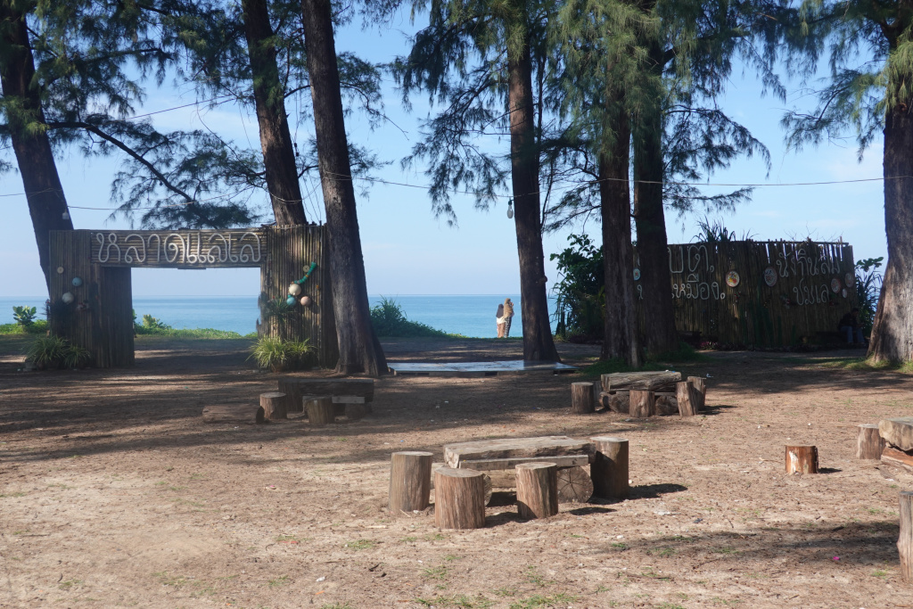 Tim made a mountain bike available, and I took a ride 5 kilometers (3 miles) up the beach road towards the national park that was once a large tin mine. Along the ride, I stopped a few times to go through the trees and look at the beach from different places. It does look much the same. I saw a gathering place fairly close to Tim’s. The sign on the left does not translate well with Google Translate. I asked some Thais what it meant, and they said it did not translate directly, but meant something like, “don’t look for something specific or too closely, enjoy the view.” I get that – the view along this beach is worth enjoying.
