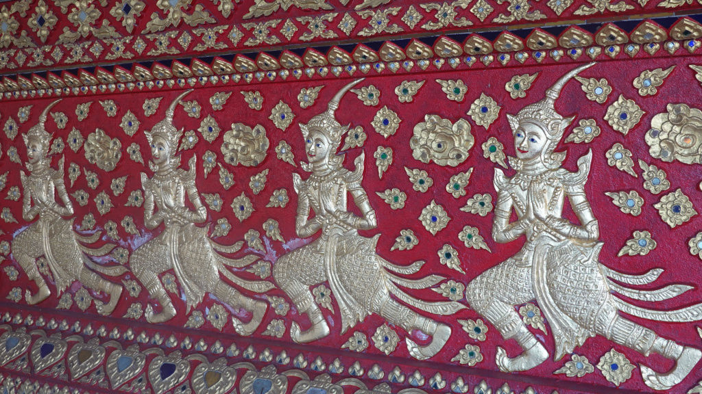 Walking to the back, I always smile when I see the dancing thewada (a thewada is an angelic being who lives in the heavenly realms) along the altar structure.