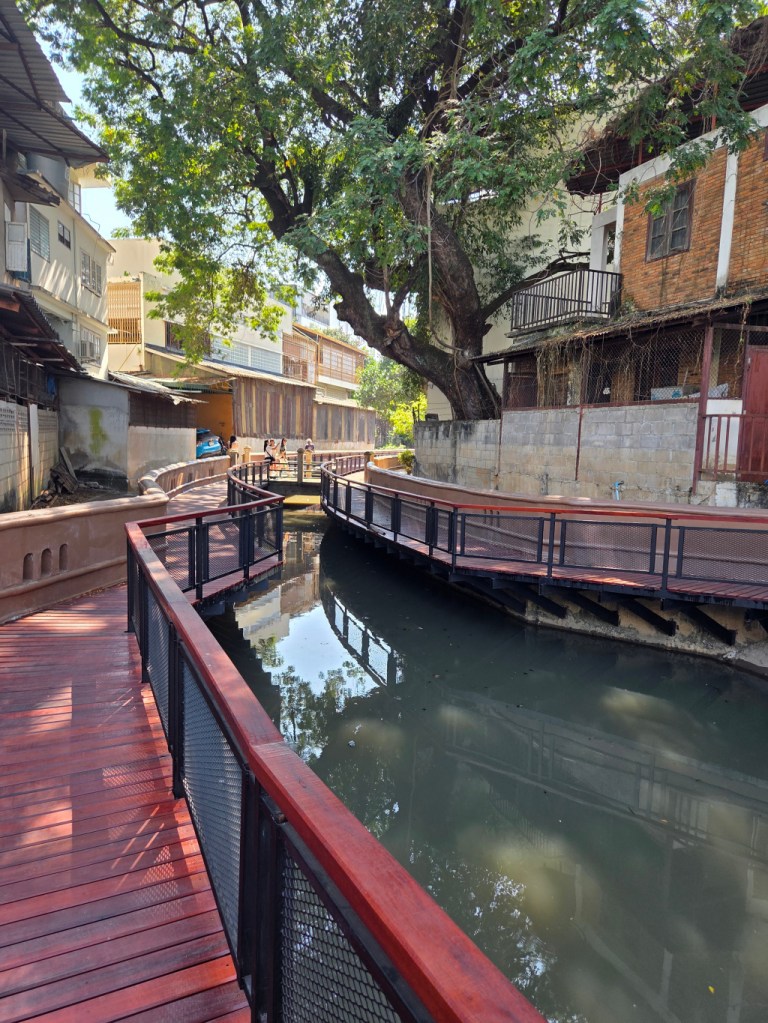 It seems that after the pandemic, a large section of the Klong Mae Kha was cleaned-up, sidewalks added, and became a popular place for tourists. This area is southwest of the old city where Ragang Road leaves Kamphaengdin Road and crosses the Klong Mae Kha. I was learning about the Klong Mae Kha in my continued interest in the Kamphaengdin, the second wall made of earth and clay around the eastern and southern parts of the old city. I made previous posts about the Klong Mae Kha improvements: