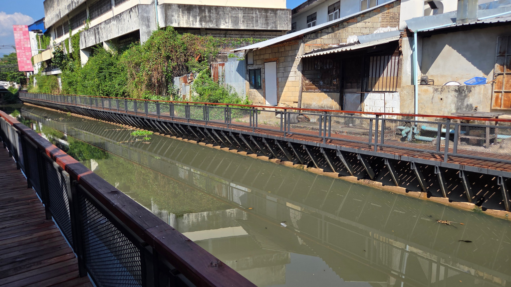 Here is a view of the klong walkway as I approached Sithiwongse Road, and then after crossing the road and back on the new walkway.