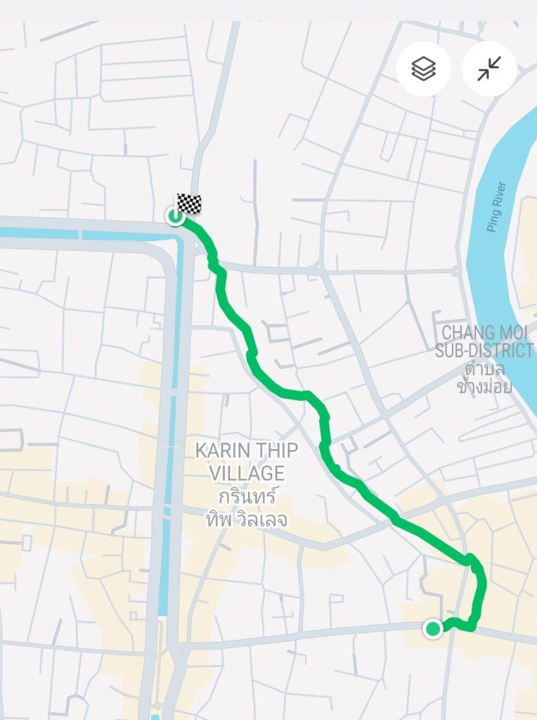 I have noticed walking over the Klong Mae Kha on Tha Phae Road that a project was underway. That project appears to be cleaning and improving the walkways along the Klong Mae Kha in this part of Chiang Mai. So today, I walked from the Story 106 co-working space to the recently-renovated walkways along the Klong Mae Kha towards Chouquette, a French boulangerie across from Sri Phum Corner. To the left is a Samsung Health map of my approximate 1.5 kilometer walk from Story 106 on Tha Phae Road to Chouquette.