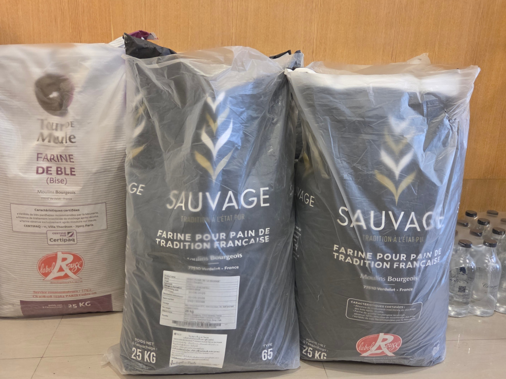 Another favorite of mine for lunch is a French Boulangerie called Chouquette. John and Rose introduced me to Chouquette a year ago on Christmas Day. I am forever grateful to them; Chouquette quickly became a favorite. The baguette sandwiches are so good. The owner is French and the staff are all Thai. They import flour from France, and from that they bake their bread. The baguettes are almost exactly like what I had in Spain while walking the Camino de Santiago pilgrimage routes. Fresh, hearty, crusty, so good. Here is a photo of the flour in the 55 pound sacks, and also a brie and apple baguette sandwich. (In Spain, the baguette sandwich would be called a bocadillo.) I also get a honey-lime iced tea every time I go to Chouquette.