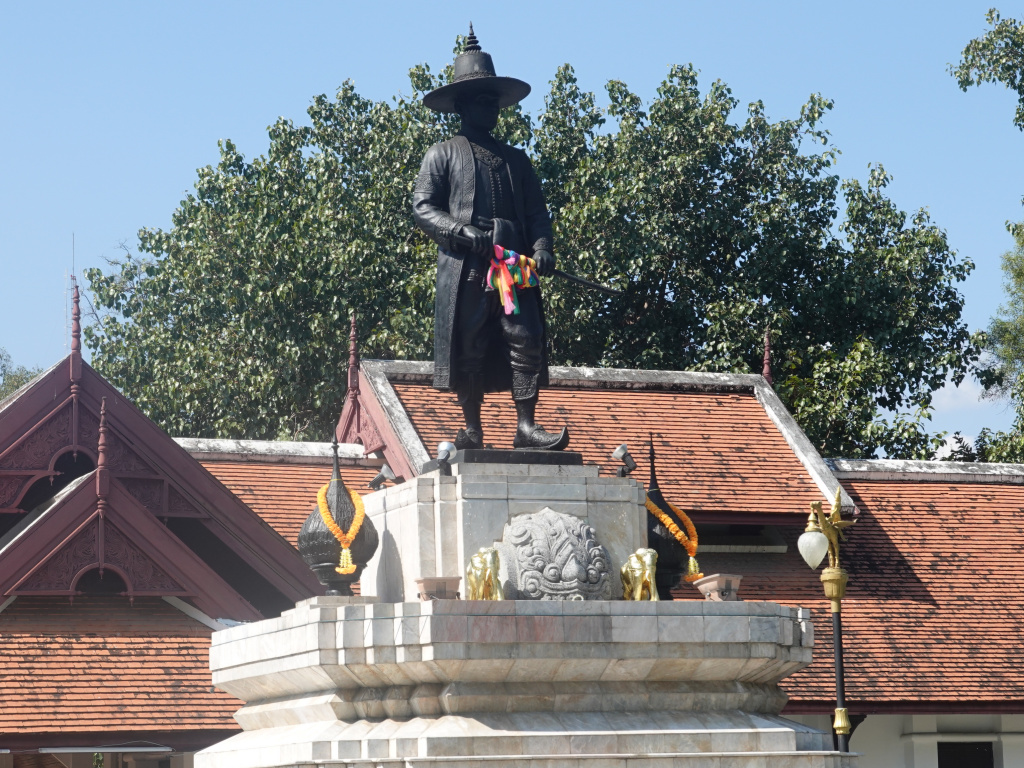 After a while, I came to Fort Kawila on the east side of the road. On the left side of the road is a monument to King Kawila. King Kawila, also known as Phra Boromrachathibodi, was the ruler of the Chiang Mai Kingdom when what is now northern Thailand, then called Lanna, was still separate from Siam. King Kawila was from Lampang. He rose in stature and was appointed to become the ruler of Chiang Mai by King Rama I (of Siam) as a tributary ruler. King Kawila was instrumental in the reclamation of Chiang Mai from the Burmese after the 200-year occupation ended in 1774. Under King Kawila many restoration projects were started, and the city started the recovery to its former glory. Many parts of Chiang Mai were restored or rebuilt, including many temples that had become abandoned during the Burmese occupation. King Kawila was important to Chiang Mai’s history, and it is fitting that he has a monument.