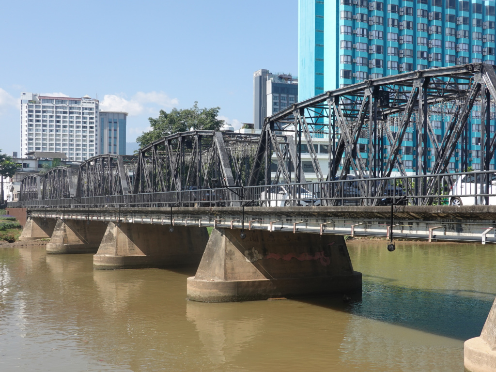 This road is a busy road, so I was focusing on staying as close to the edge as possible. I finally got to the intersection of Rat Uthit Road and the Chiang Mai-Lamphun Road. The Chiang Mai-Lamphun Road is also busy (being the main route between Chiang Mai and Lamphun), and it feels safer because there is a little more of a shoulder or walkway by the road. And continued northward with my sights on crossing the Ping River over the Iron Bridge.