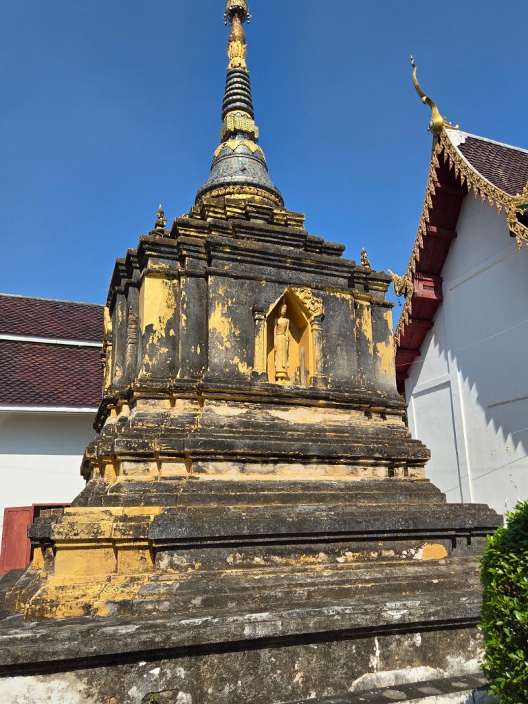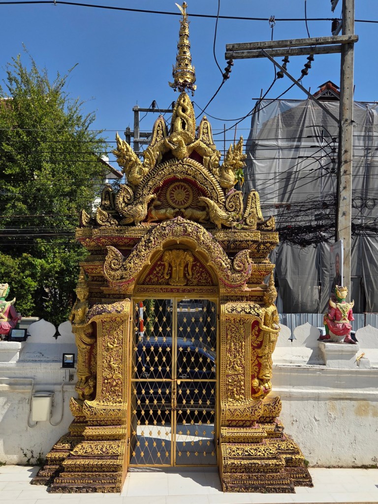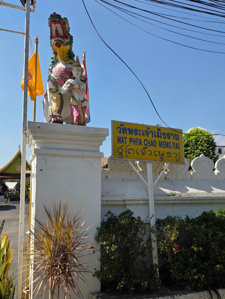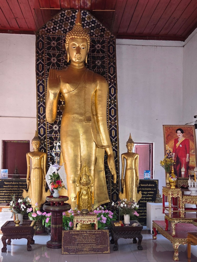 Walking back to The 3-Sis through the sois (a soi is a small road, smaller than a road, larger than an alley, perhaps a “lane”) after getting a haircut at Samlaan Barber (my favorite barber), I found myself on Ratchamanka Soi 6. And I came upon a temple that is something of an “old friend.” I have visited Wat Phra Chao Mengrai many times over the years.