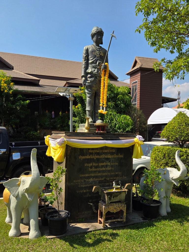 And just to the north of the old tree is the statue of King Mengrai.
