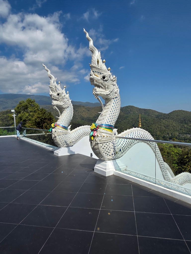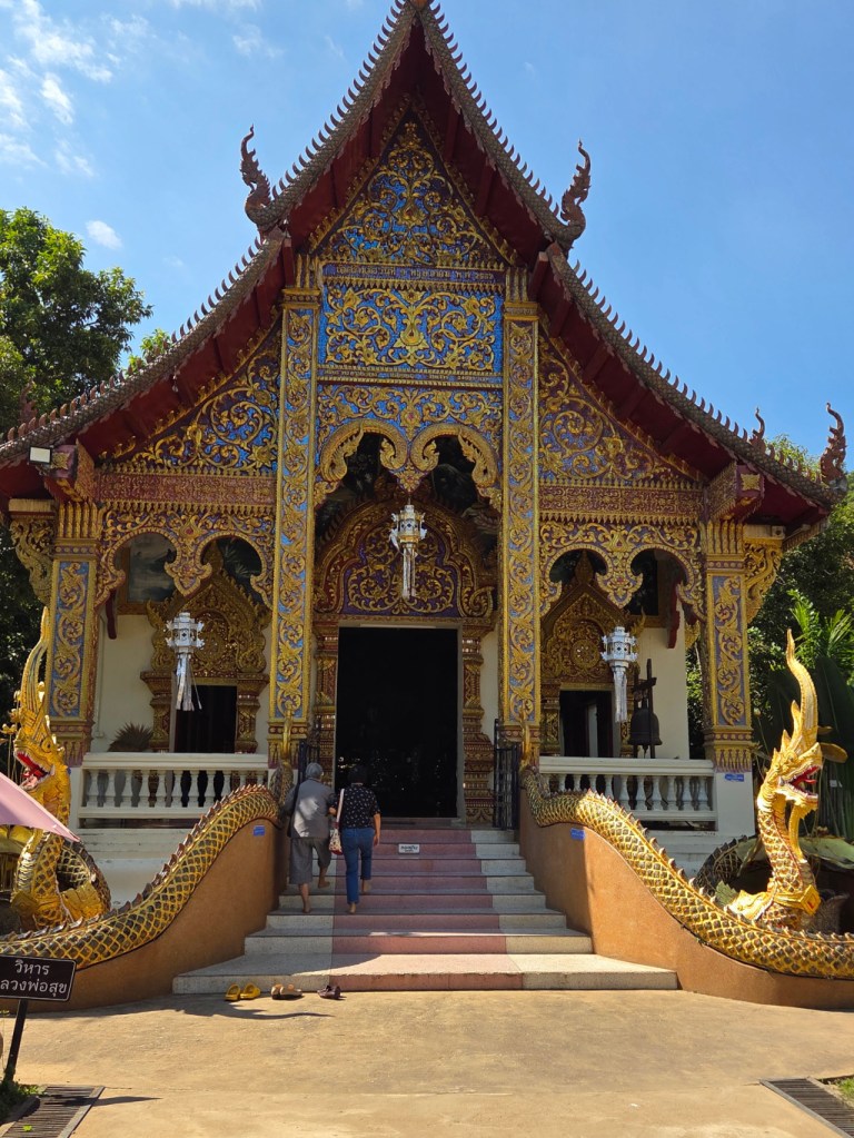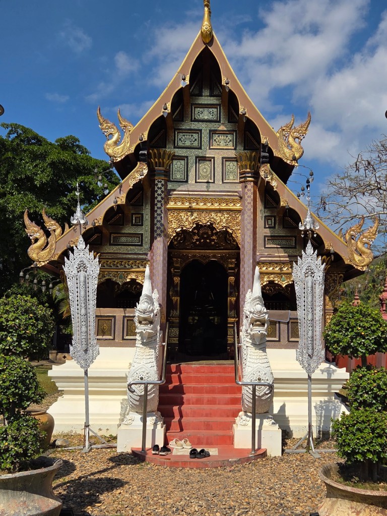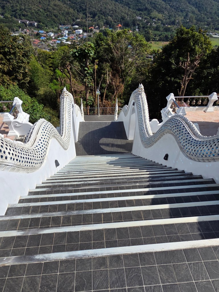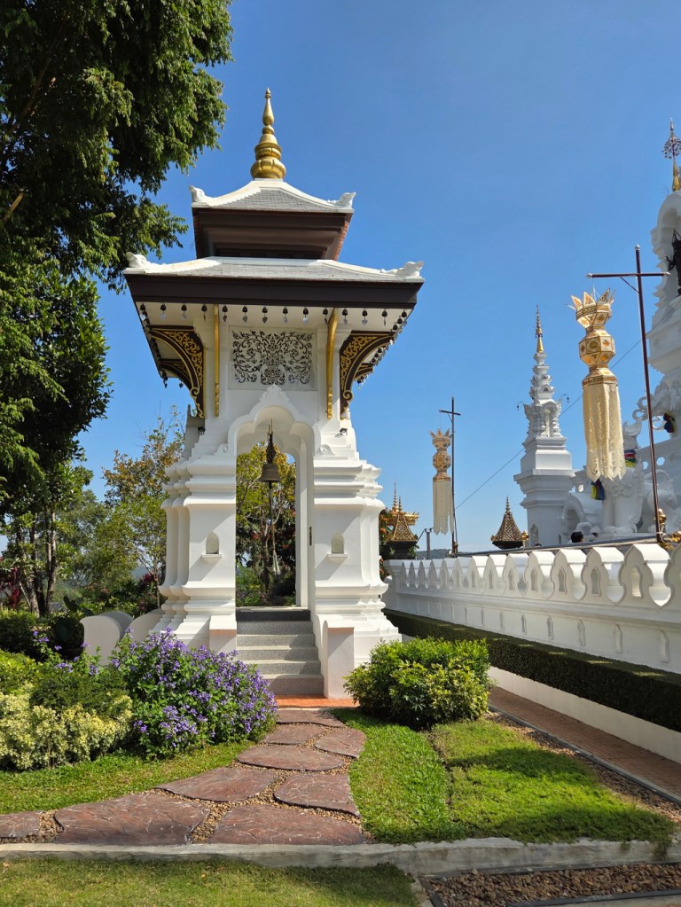 Chiang Mai has its own “White Temple” or more commonly known as the White Castle Temple to distinguish it from the White Temple in Chiang Rai. While not yet as famous as the two temples in Chiang Rai, the White Castle Temple is becoming more and more known. Wat Phra That Sri Mueang Pong is a serene, newly built temple with a large white structure high on a hilltop enclosing a gold chedi. I could find no reference to the actual date of construction or its opening, just “newly built.” It is known locally as Loha Prasat Sri Mueang Pong, meaning “Metal Castle of the Royal City.” And, while the temple is relatively new, it is said to hold deep spiritual significance to locals, and is becoming a popular destination for photography, quiet reflection, and cultural immersion. Knowing all of this, I wanted to see this White Castle Temple.