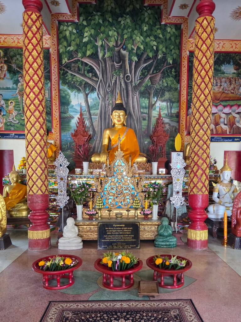 Then I got to the ubosot, also fairly modest, nice, and not particularly grand. Here is a photo of the front and another of the inside.