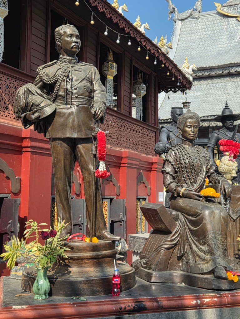 After seeing the viharn, we walked over to see the silver ubosot (ordination hall). On the way, I often stop to take a photo of the statue of King Kaeo and his wife, the Queen.