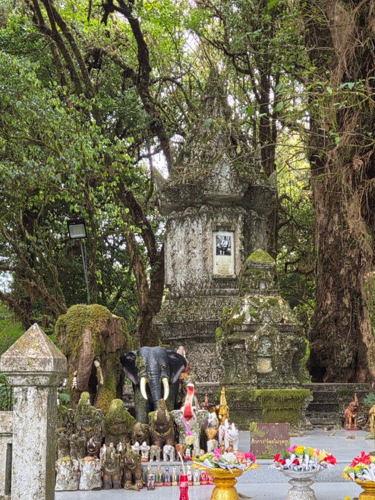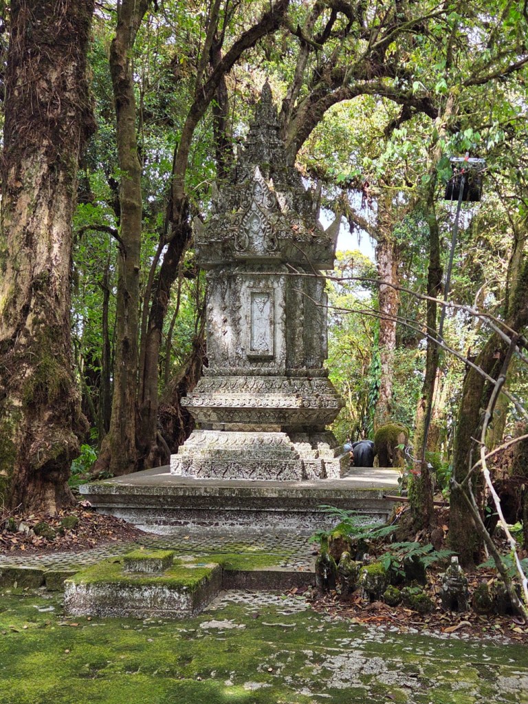 Nearby the actual peak is the monument in which the remains of Inthawichayanon are interred. I took a photo of the back and then of the front. In the damp forest the monument gets covered with moss quickly.