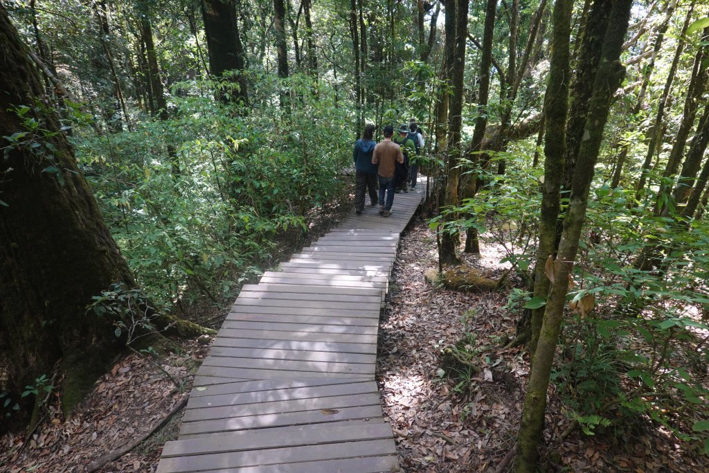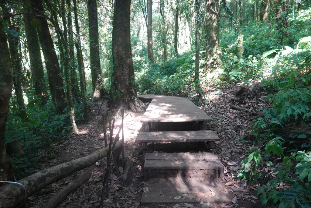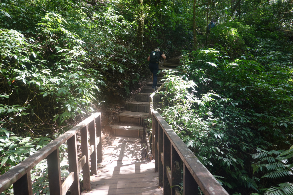 Doi Inthanon is very popular – the people at The 3-Sis said it was the most popular tour they book for guests. Many sections of the hiking path were covered with wooden steps or wooden planking to prevent erosion and over-wear from many people making the hike. And yes, that first section was very much uphill. In spite of the uphill challenge, being in the forest is beautiful and cool. Here is the start of our uphill climb towards the top.