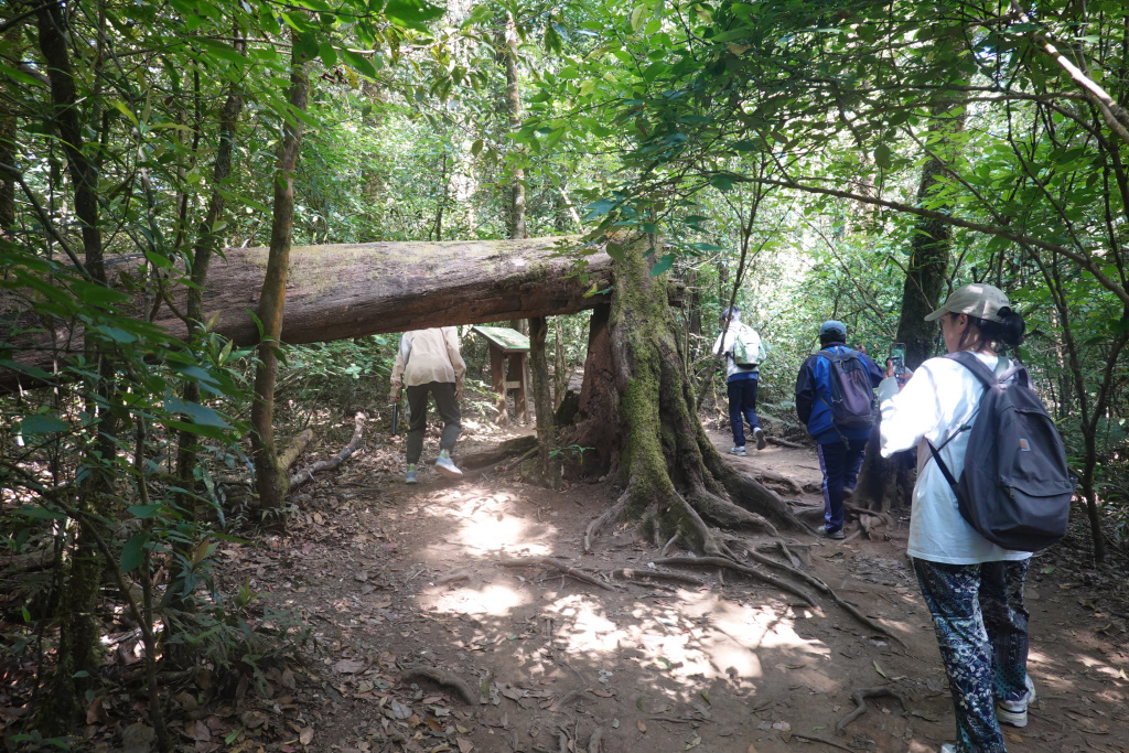 There are many large trees in the forest here. And some will inevitably fall and we have to walk under or around.